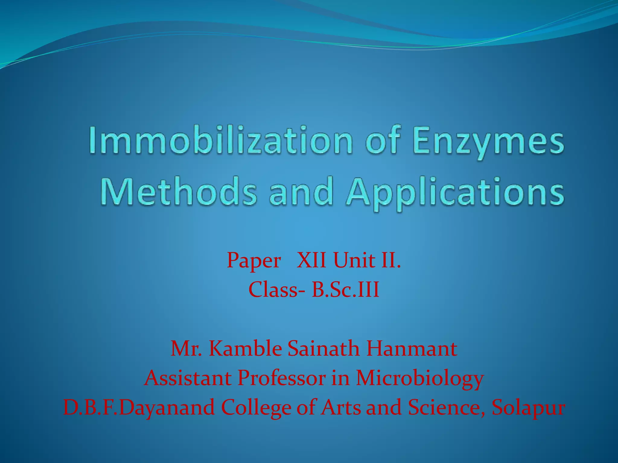 Enzyme immobilization and applications | PPT