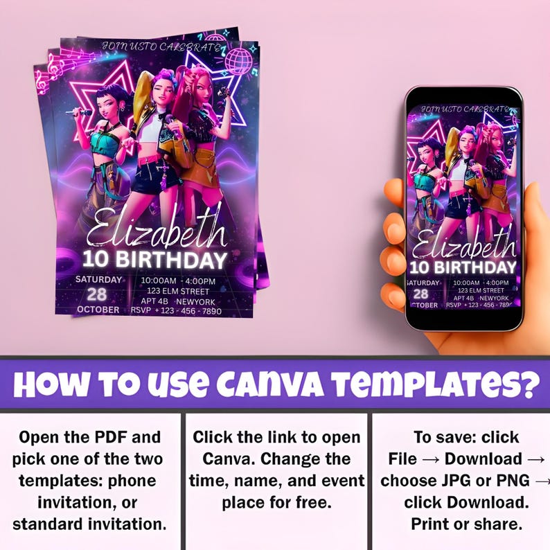 KPOP Girls Birthday Invitation, K-pop Theme Party Editable Invite ...
