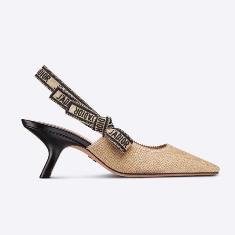 J'Adior Slingback Pump Natural Raffia Embroidered with Multicolor Dior ...