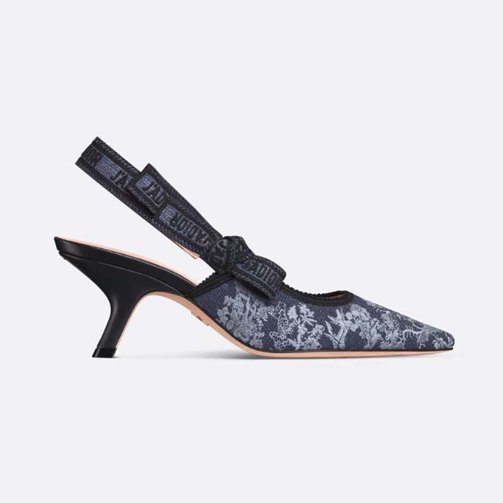 Dior Women J'Adior Slingback Pump Blue Multicolor Embroidered Denim