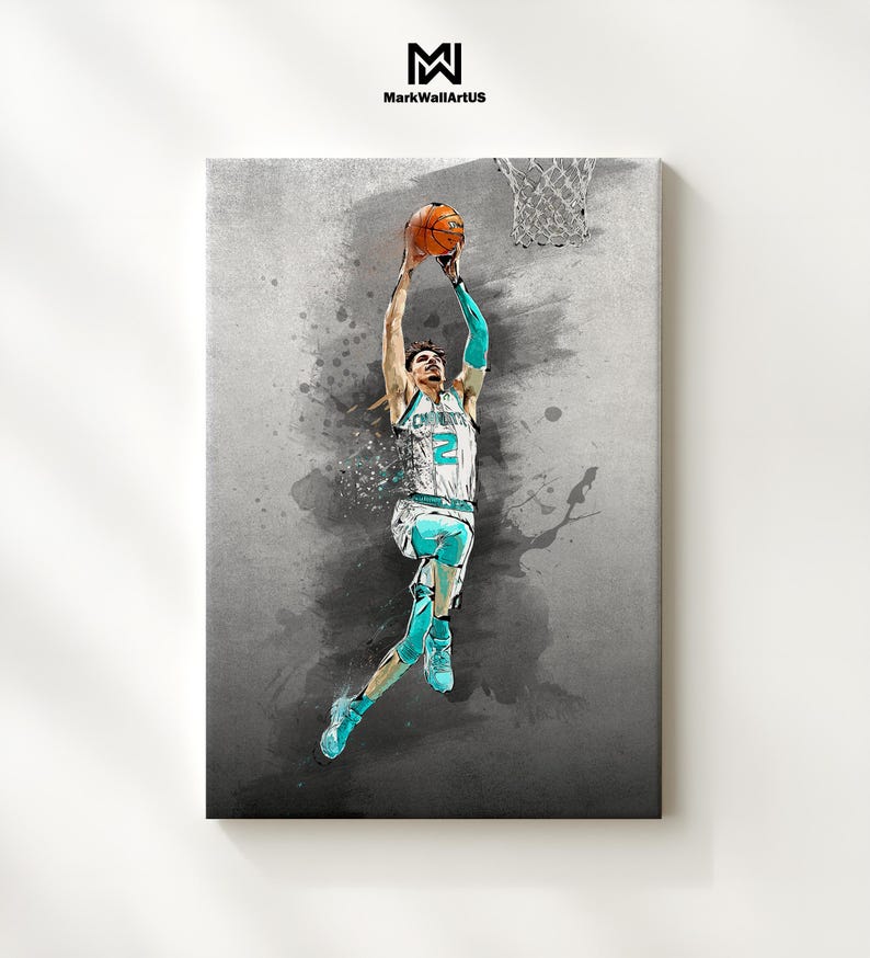 Lamelo Ball Poster, Charlotte Hornets Wall Art, Mid Century Modern ...