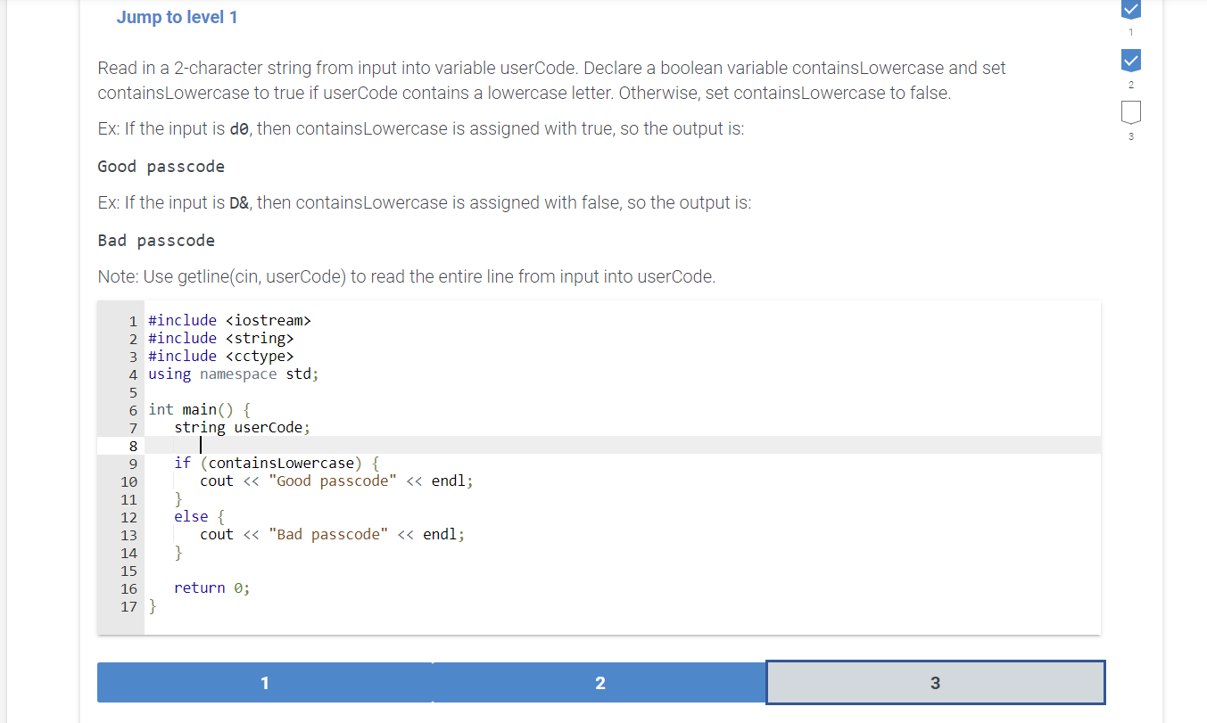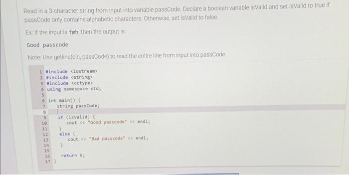 Solved A 3-character string. passCode, is read from input. | Chegg.com