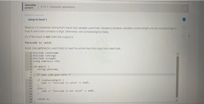 Solved CHALLENGEACTIVITY3.15.1: Character operations.Jump to | Chegg.com