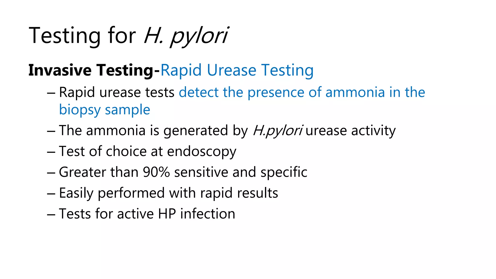 Invasive tests for detection of H. pylori RUT: Rapid Urease Test , HPE ...