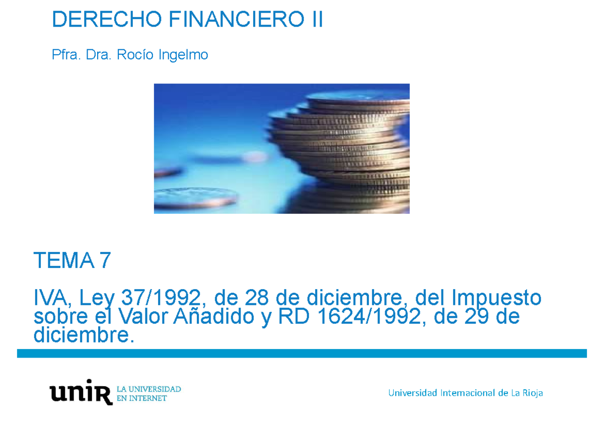 Diapositivatema 7IVA1 - DERECHO FINANCIERO II TEMA 7 IVA, Ley 37/1992 ...