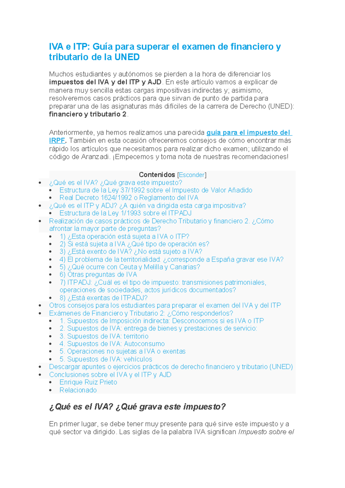 IVA e ITP - Resumen Derecho Financiero y Tributario II - IVA e ITP ...