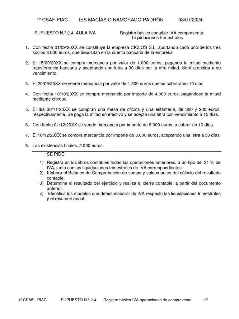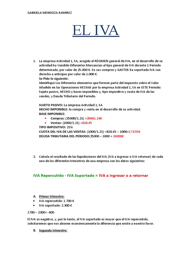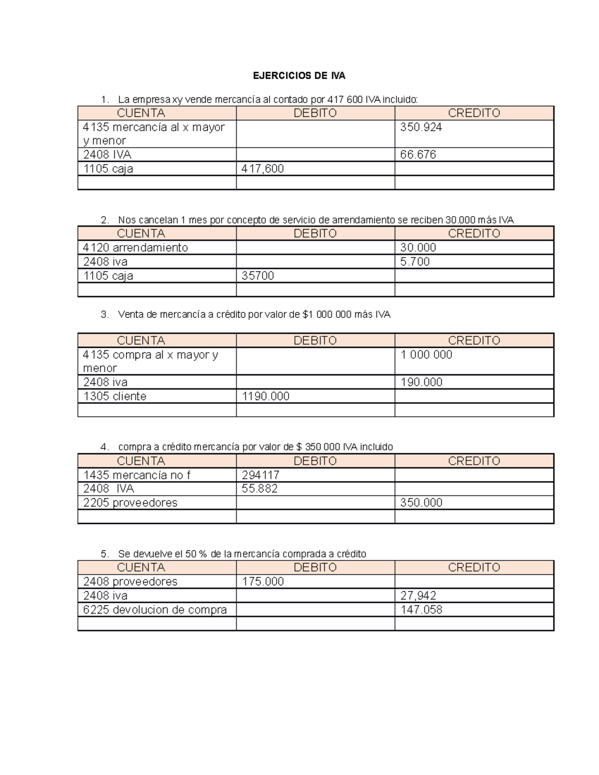 Ejercicios Prácticos de IVA y Cálculos | PDF | Impuesto al valor ...