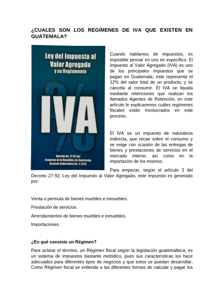 Regímenes de IVA en Guatemala | PDF | Impuesto al valor agregado ...