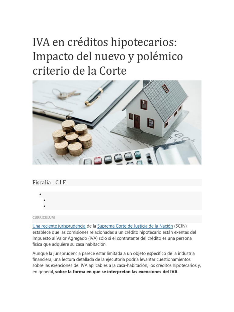 IVA en Créditos Hipotecarios | PDF | Caso de ley | Impuesto al valor ...