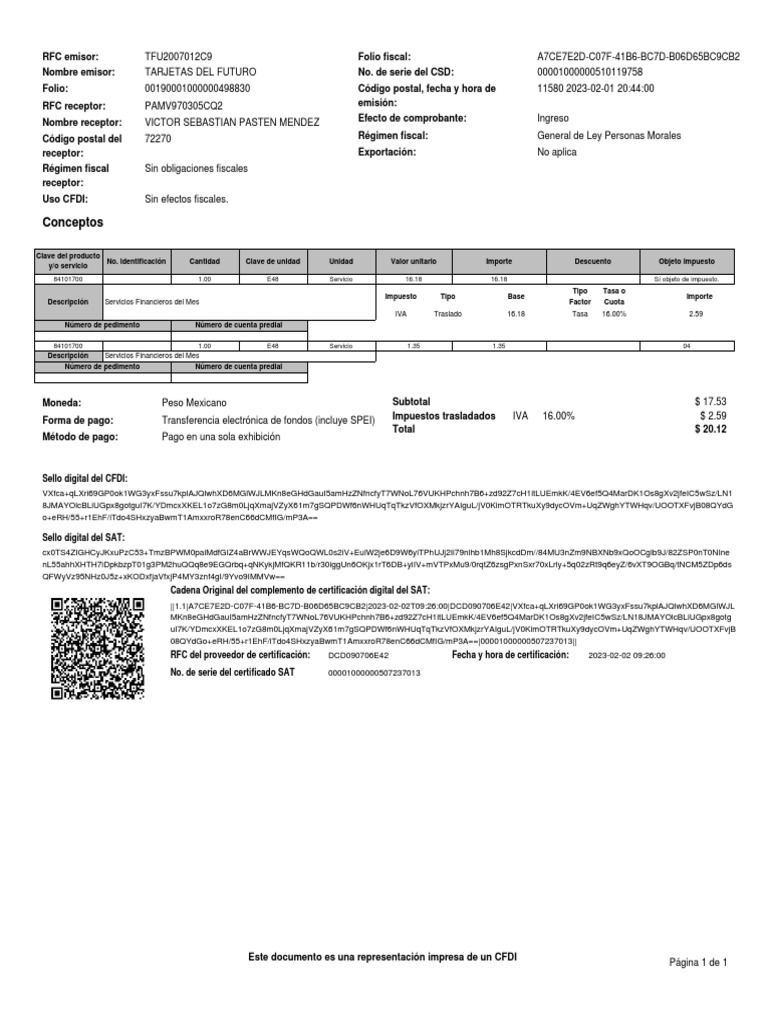 Conceptos: Servicios Financieros Del Mes IVA Traslado 16.18 Tasa 16.00% ...