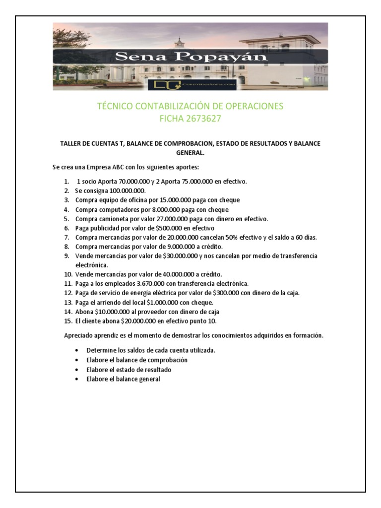 TALLER DE CUENTAS T, Balance de Comprobacion y Estados Financieros | PDF