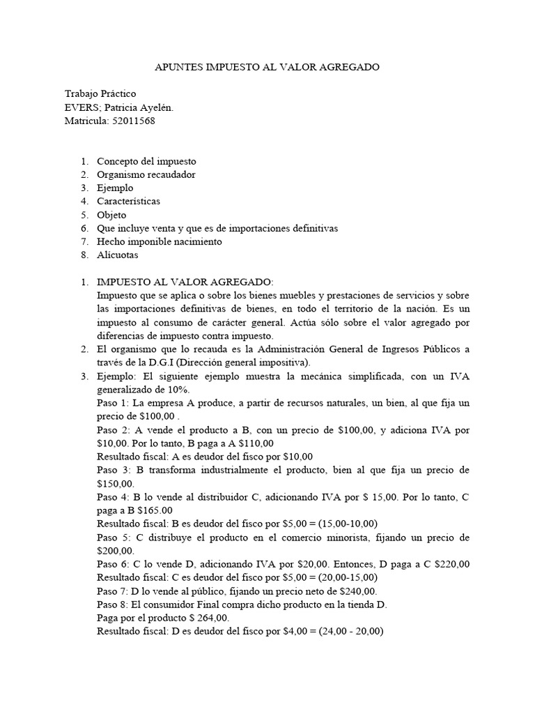 Trabajo Practico Financiero y Tributario IVA | PDF | Impuesto al valor ...