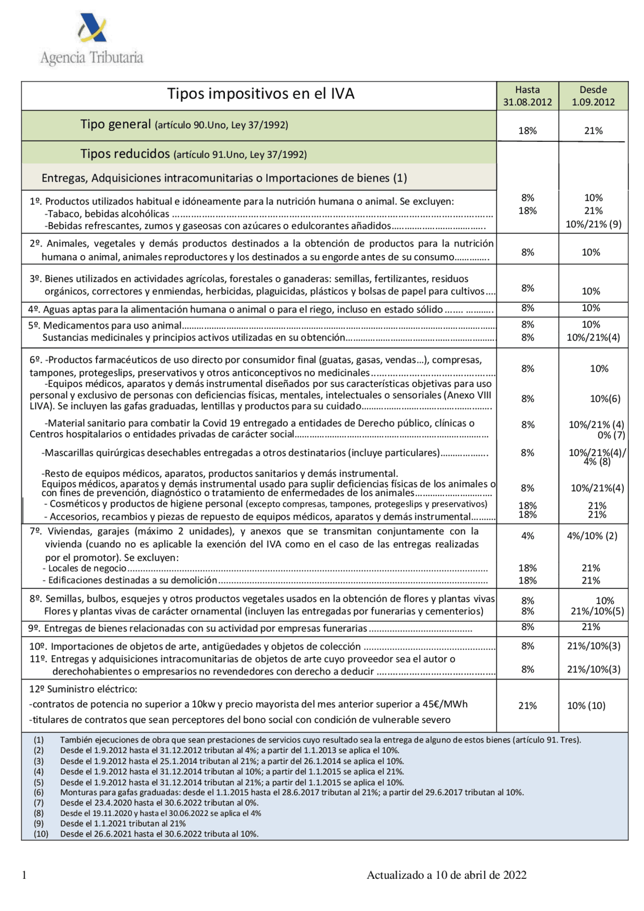 Tipos de IVA actualizados al año 2022 | Ejercicios de Derecho ...