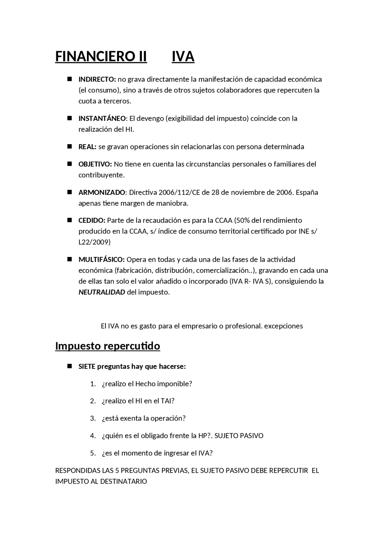 Financiero 2 iva - Apuntes de Derecho Financiero y Tributario - Docsity