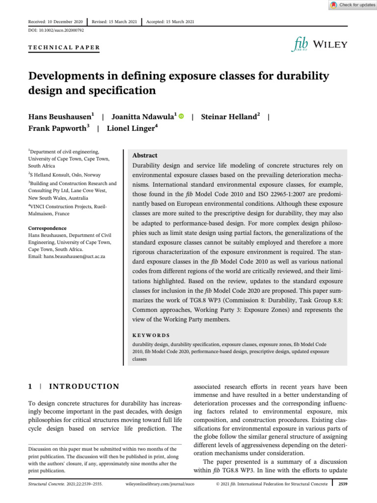 Structural Concrete - 2021 - Beushausen - Developments in Defining ...