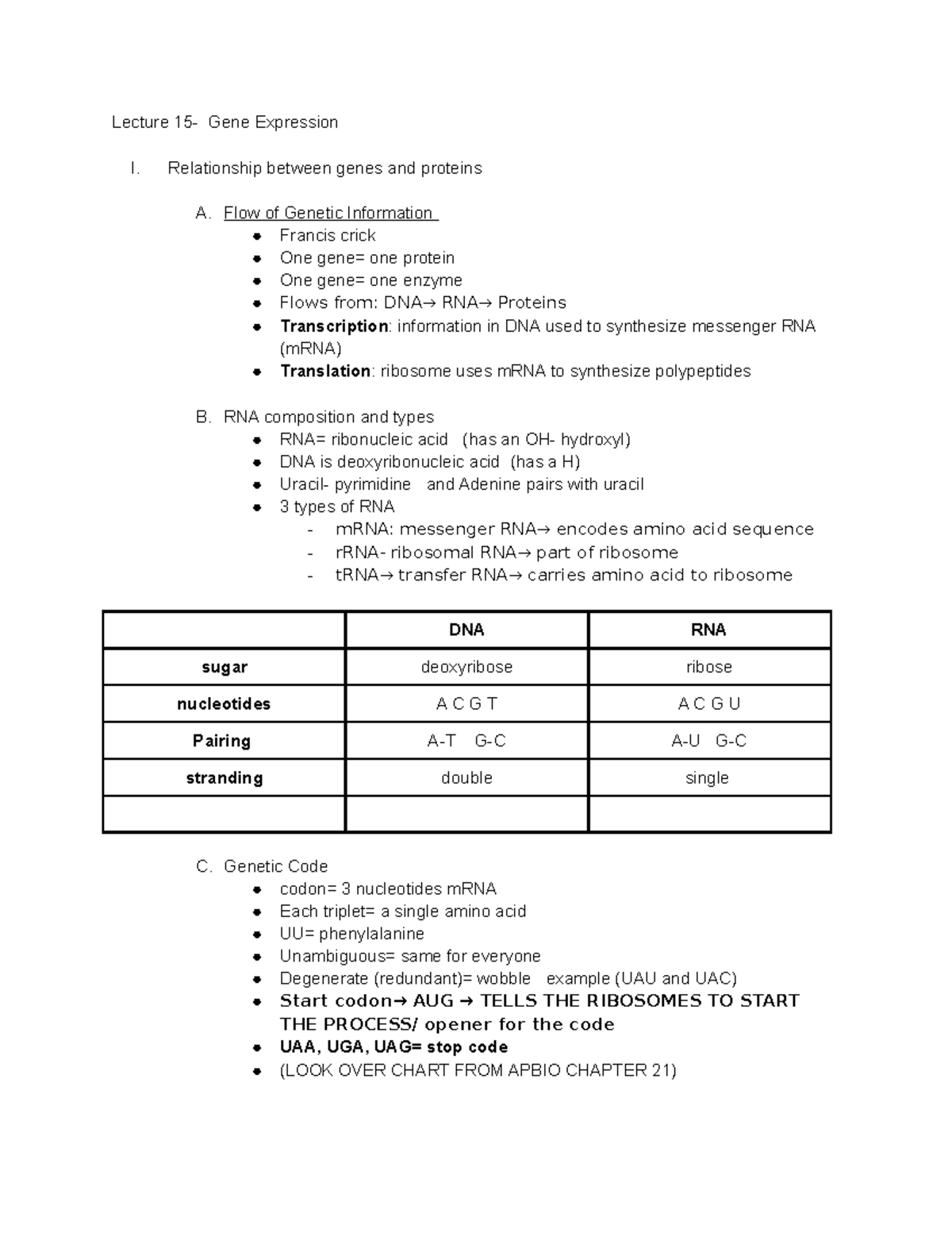 Lecture 15 - none - Lecture 15- Gene Expression I. Relationship between ...