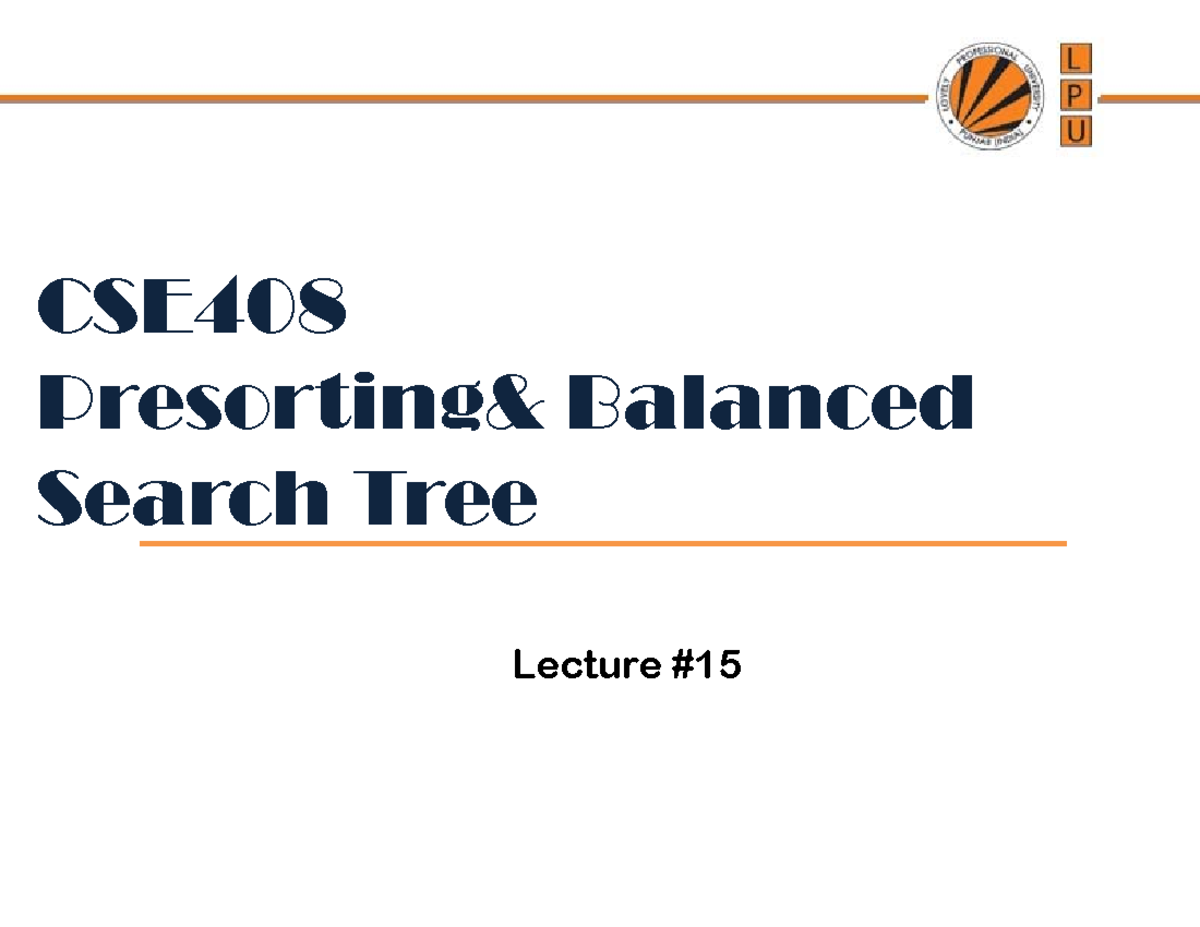 Lecture 15(Presorting,BST) - CSE408Presorting& BalancedSearch Tree ...