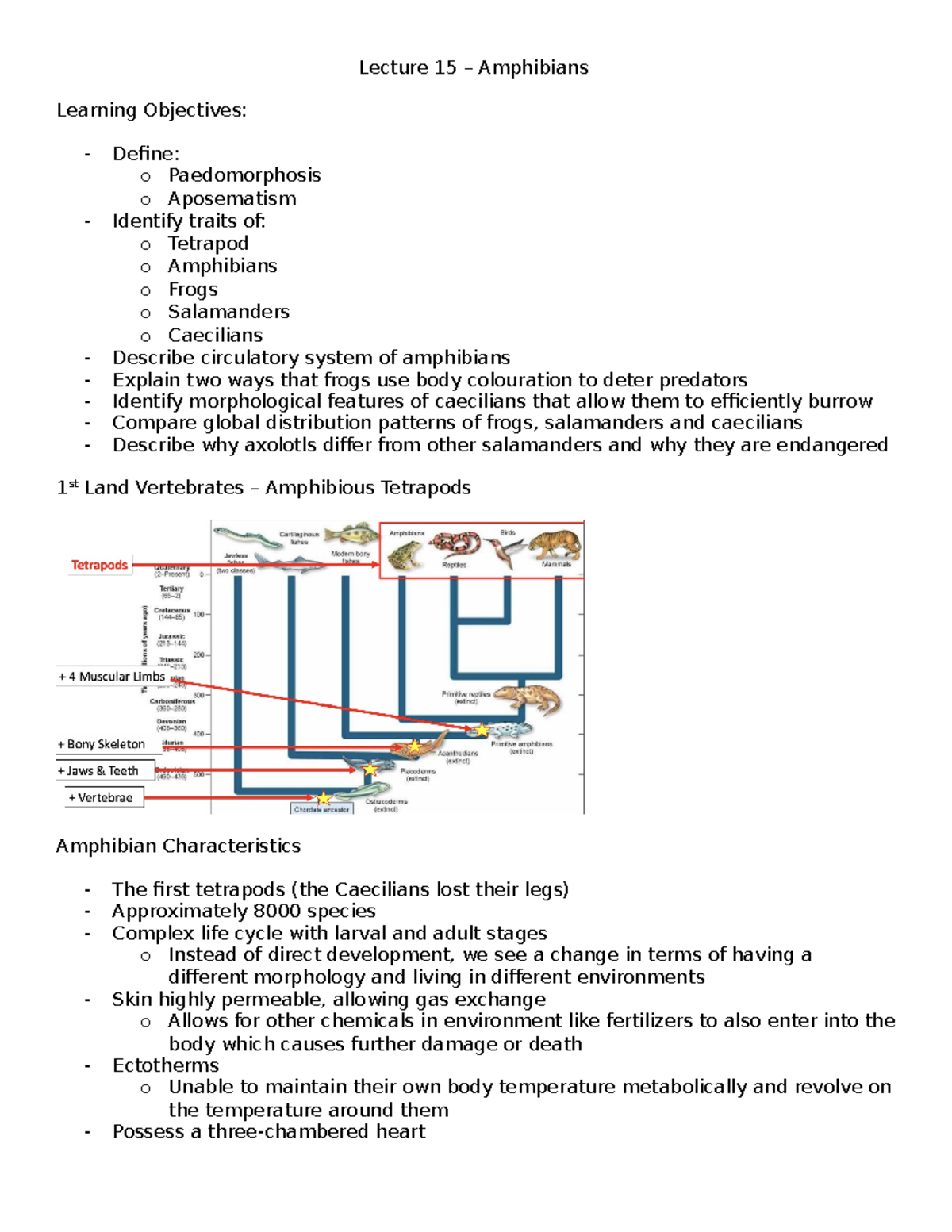 Lecture 15 - Amphibians - Lecture 15 – Amphibians Learning Objectives ...