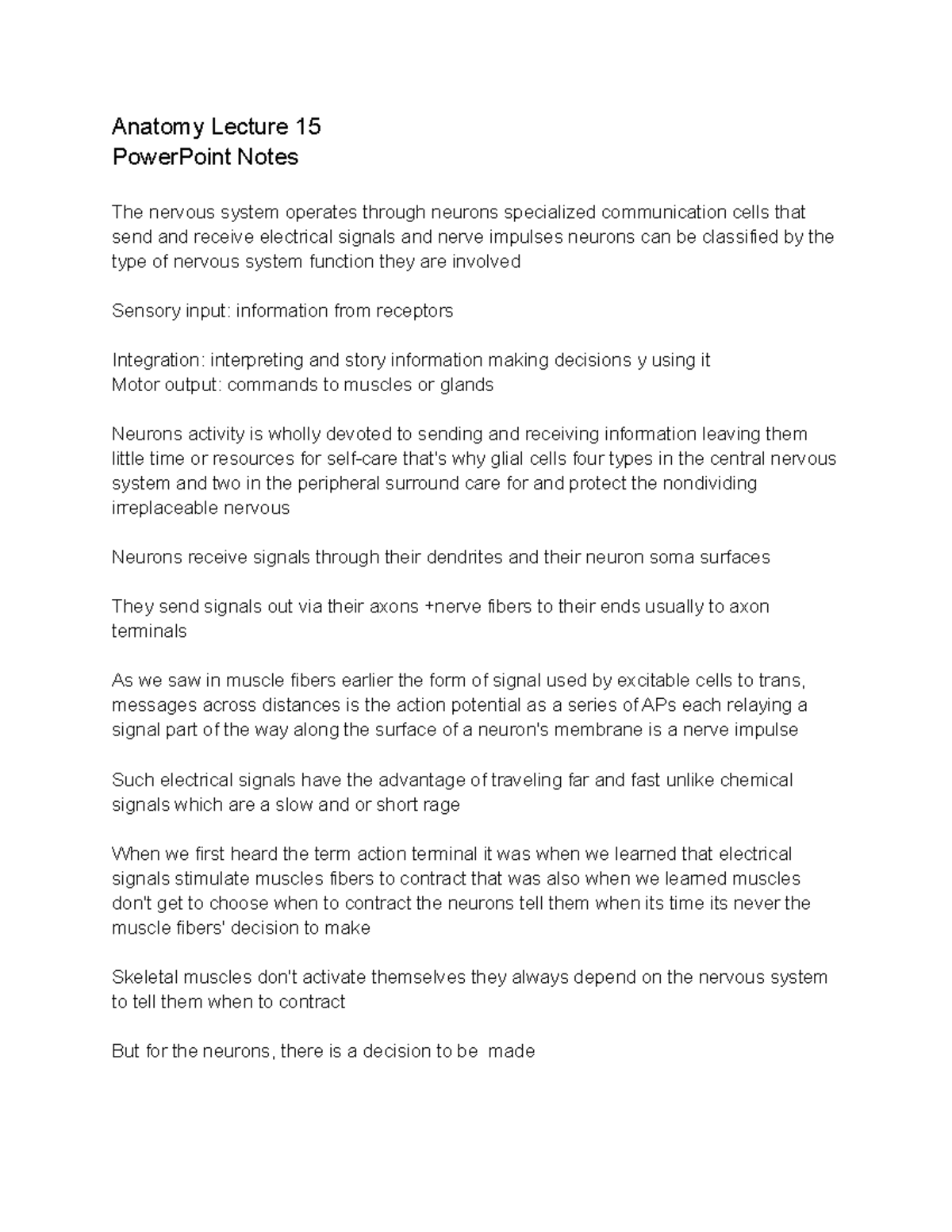 Anatomy lecture 15 - Anatomy Lecture 15 PowerPoint Notes The nervous ...