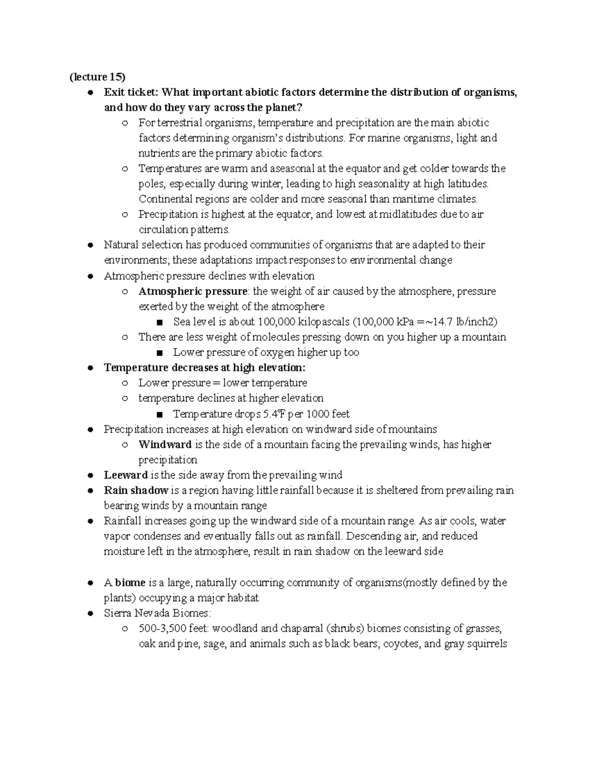 BIO 1B Lecture 15 - (lecture 15) Exit ticket: What important abiotic ...