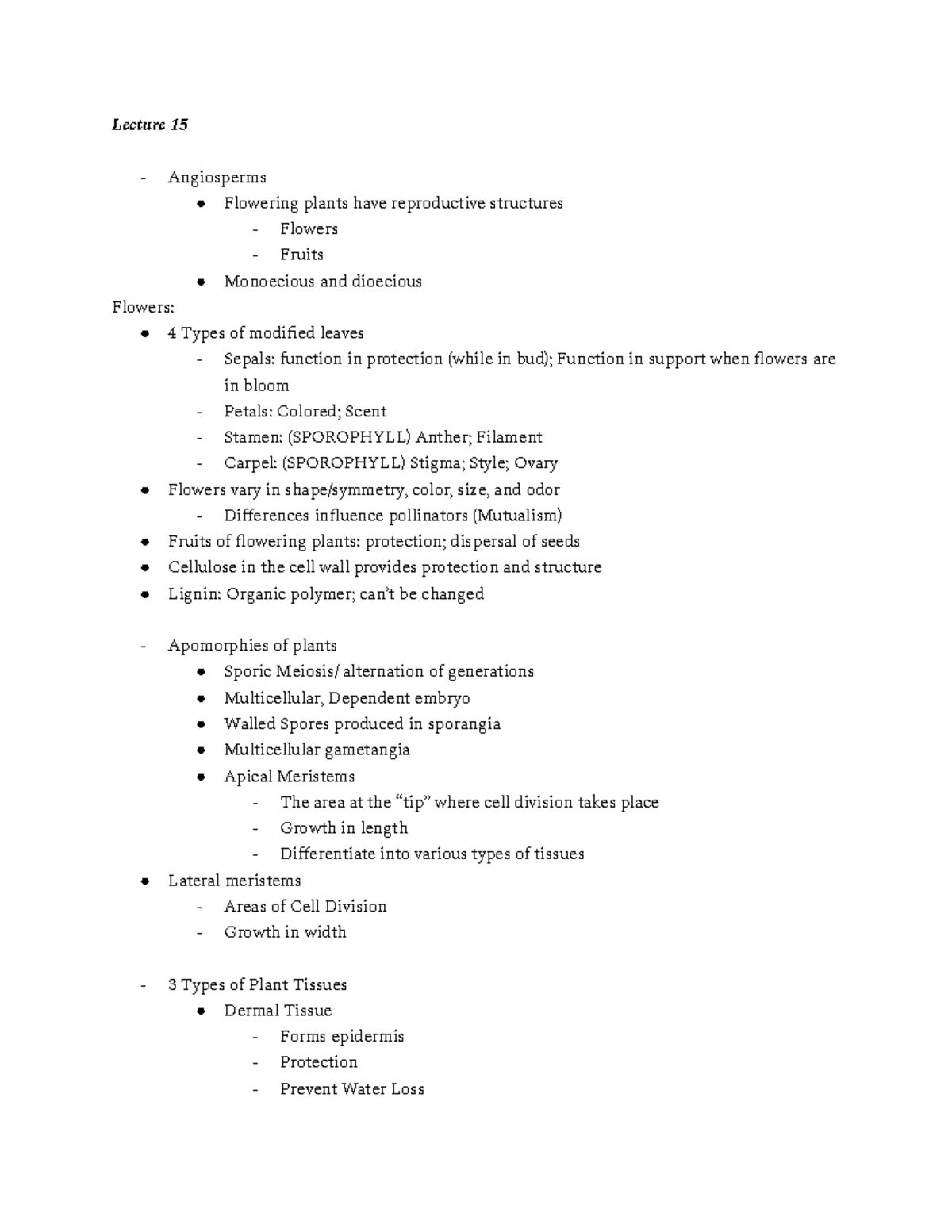 Lecture 15 BSC 116 - Lecture 15 Angiosperms Flowering plants have ...