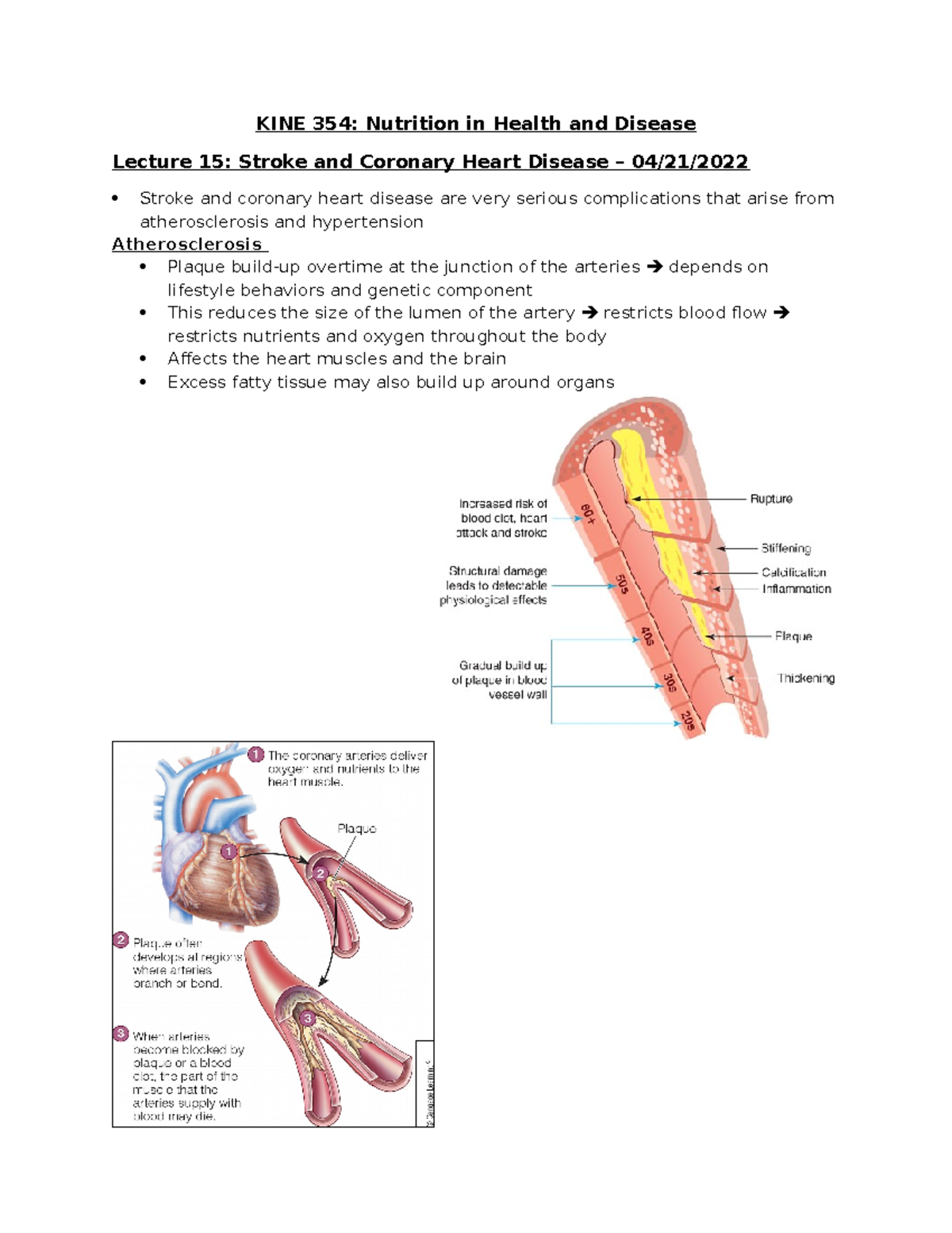 Lecture 15- Stroke and Coronary Heart Disease - KINE 354: Nutrition in ...