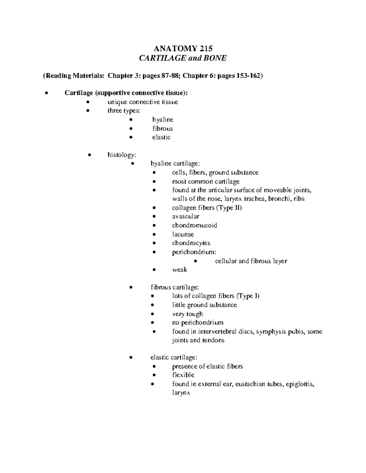 Lecture 15 Cartilage, Bone - ANATOMY 215 CARTILAGE and BONE (Reading ...