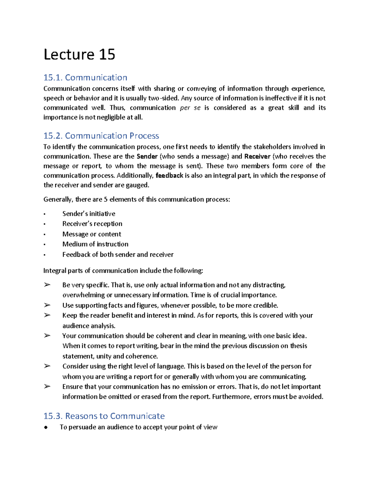 HUM120 Handouts Lecture 15 - Lecture 1 5 15 .1. Communication ...