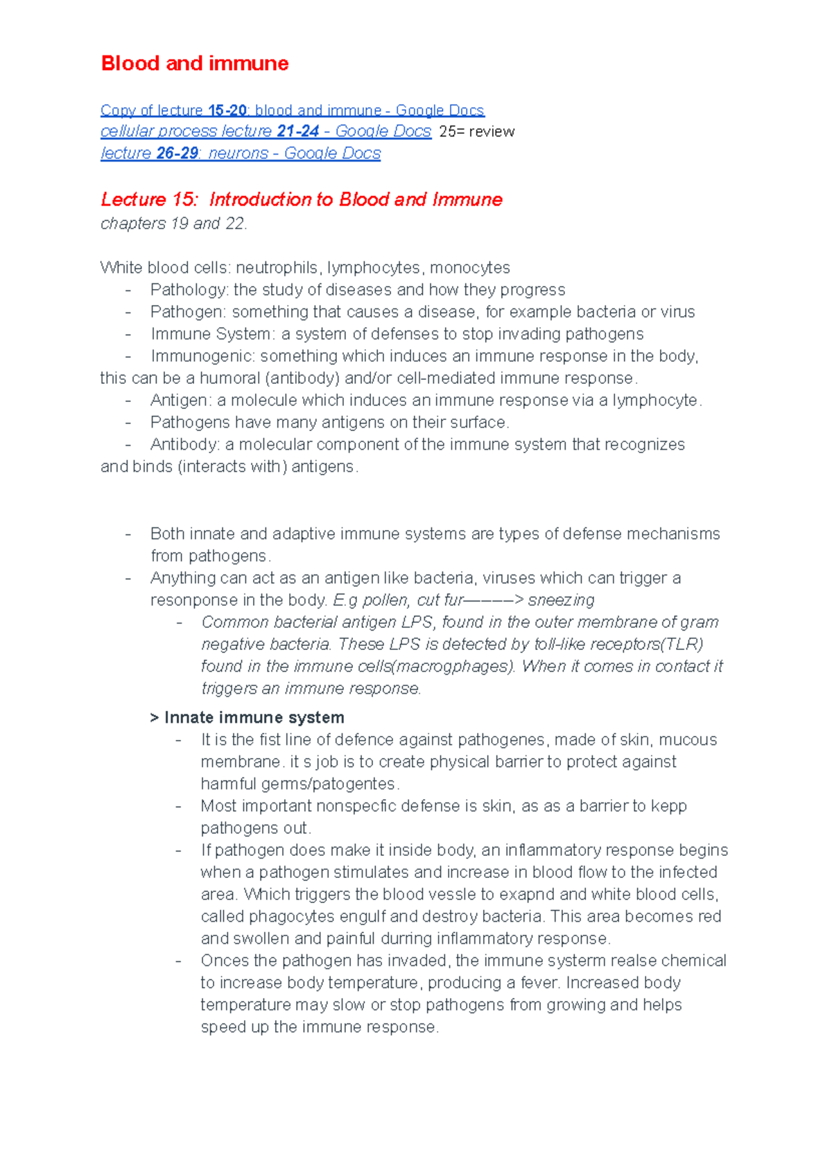 Blood and immune - lecture 15 an 16 - Blood and immune Copy of lecture ...