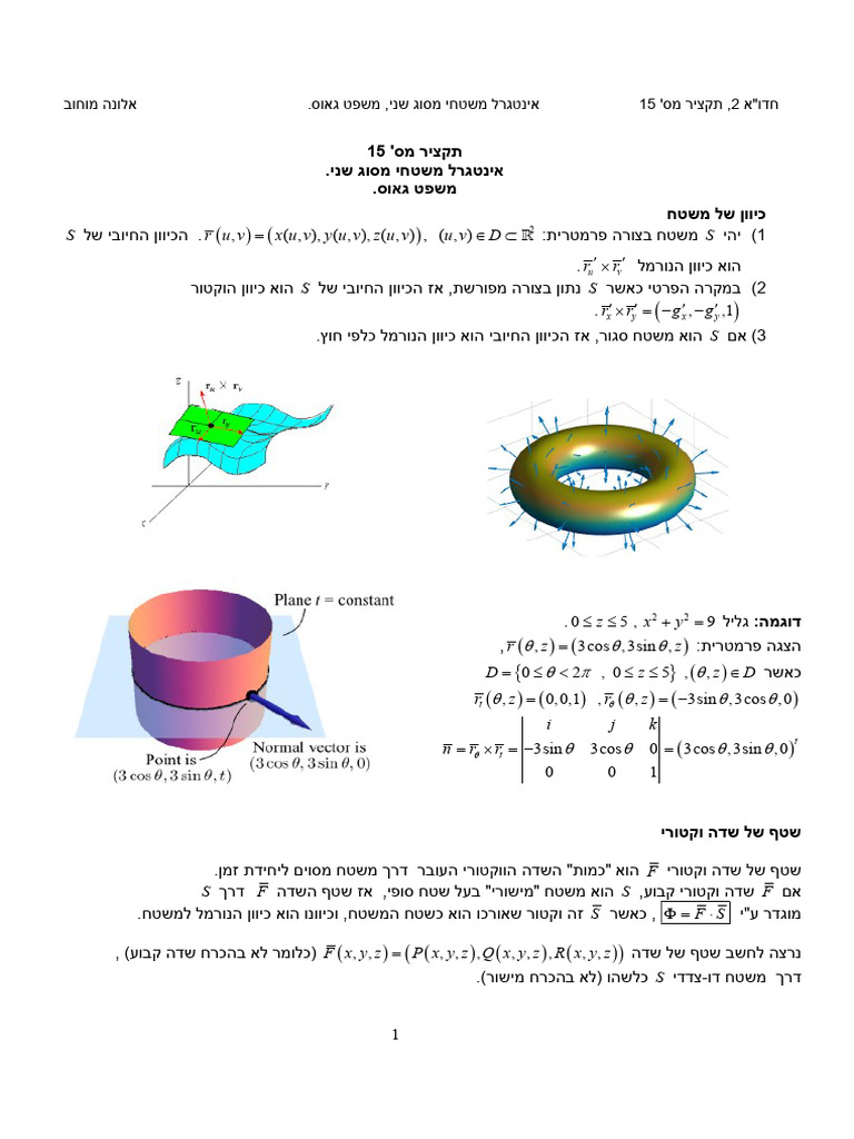 lecture 15 - אינטגרל משטחי מסוג שני, משפט הדברגנט | PDF