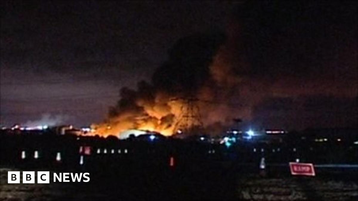 'Huge' fire at Kingsnorth waste oil depot - BBC News