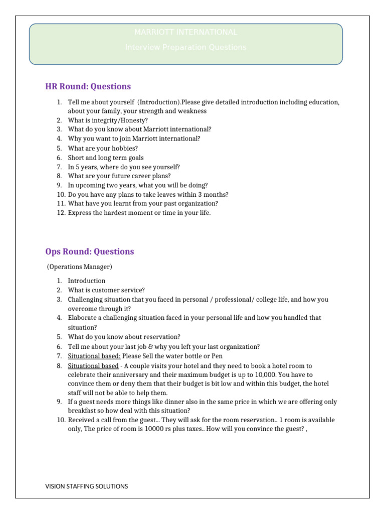 Marriott Interview Prep Questions Guide | PDF