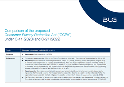 Bill C-27: Businesses to protect Canadian consumers' privacy | BLG