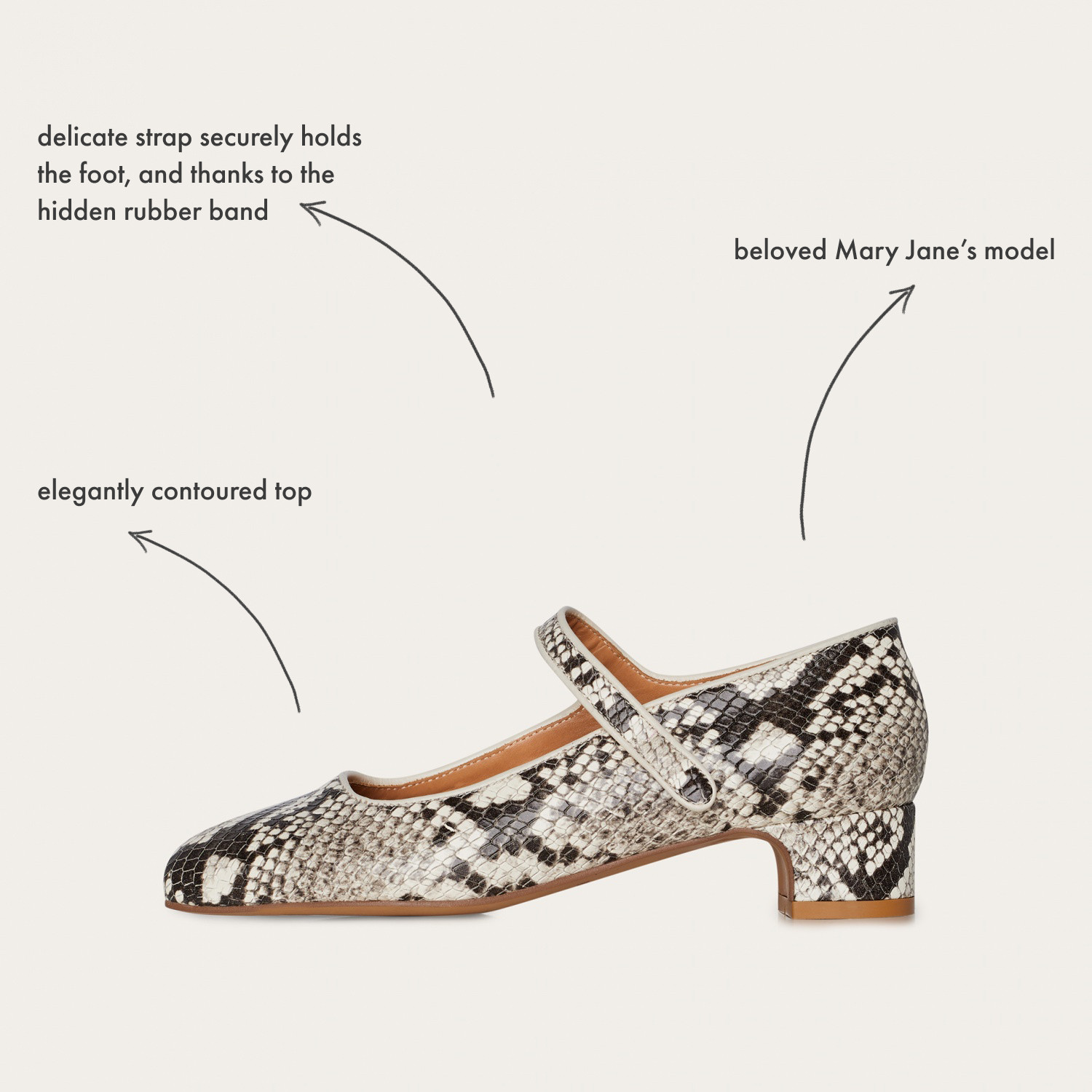 Dora Low Heels, off white python pattern | Balagan Studio