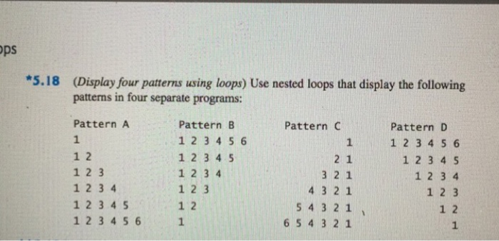 Solved 5-18) (Display four patterns using loops) Ask the | Chegg.com
