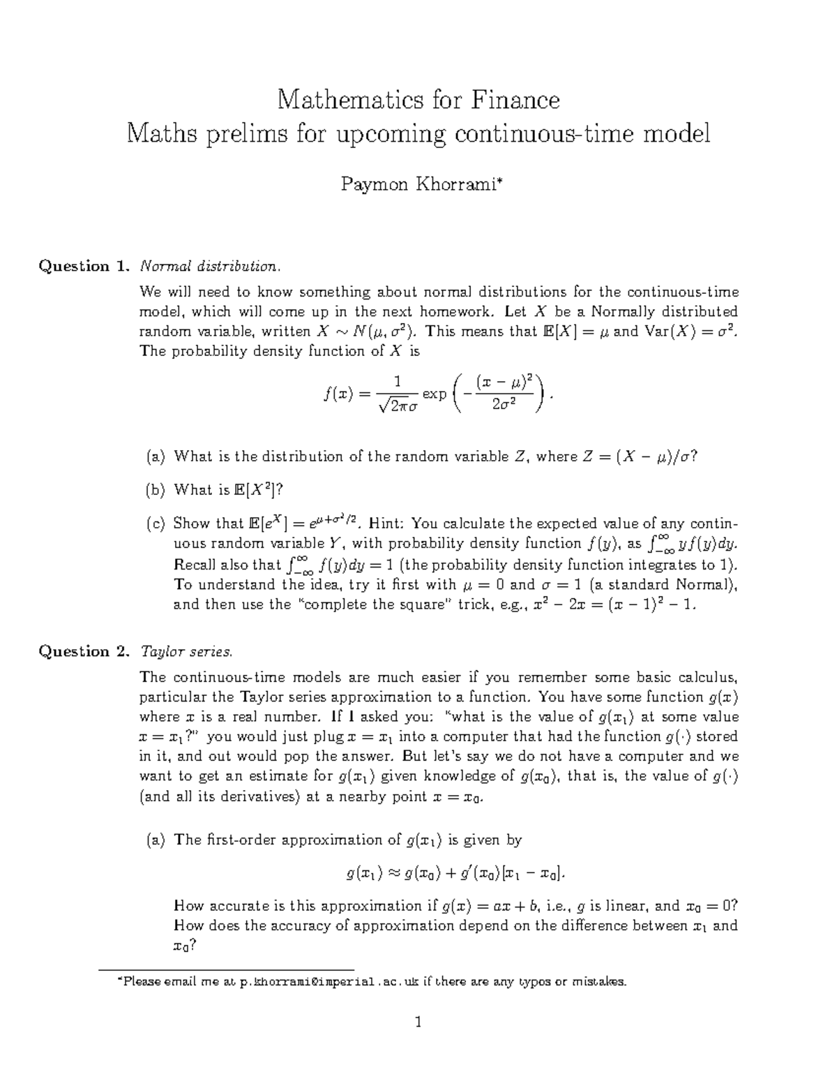 M4F-review-calculus - 2021 math for finance - BUSI97336 - Imperial ...