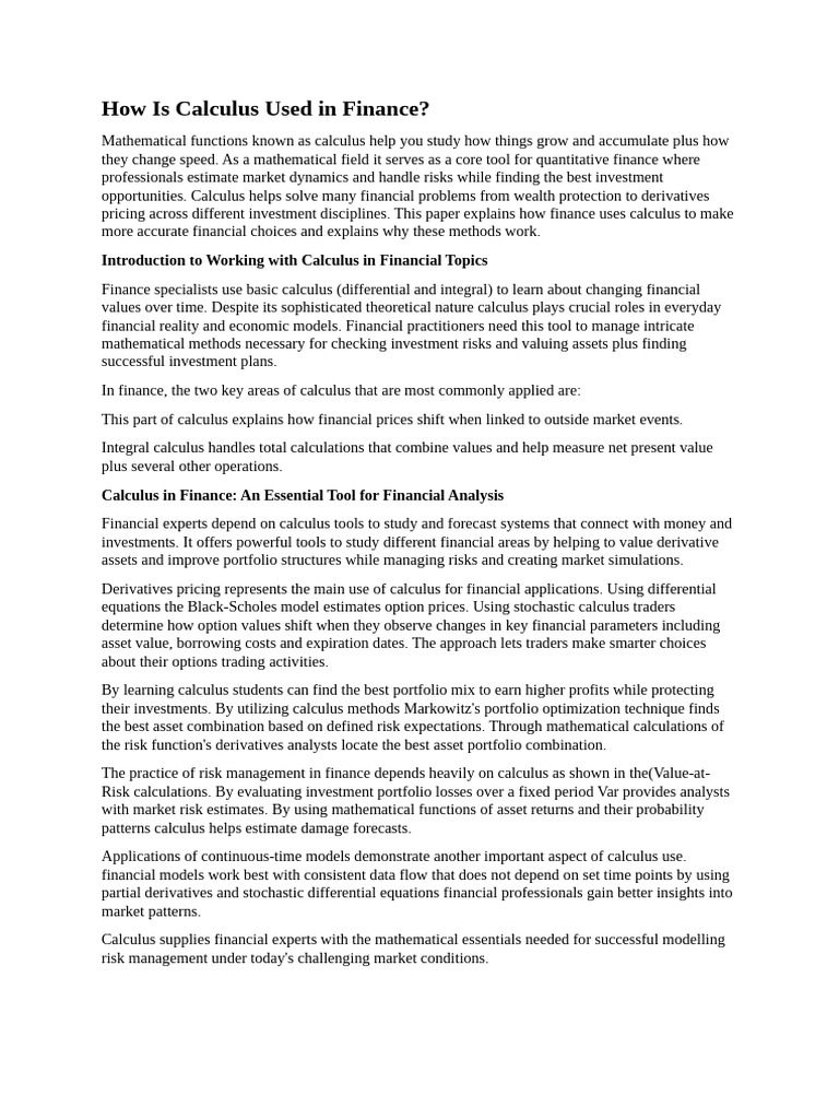 How Is Calculus Used in Finance | PDF | Greeks (Finance) | Option (Finance)