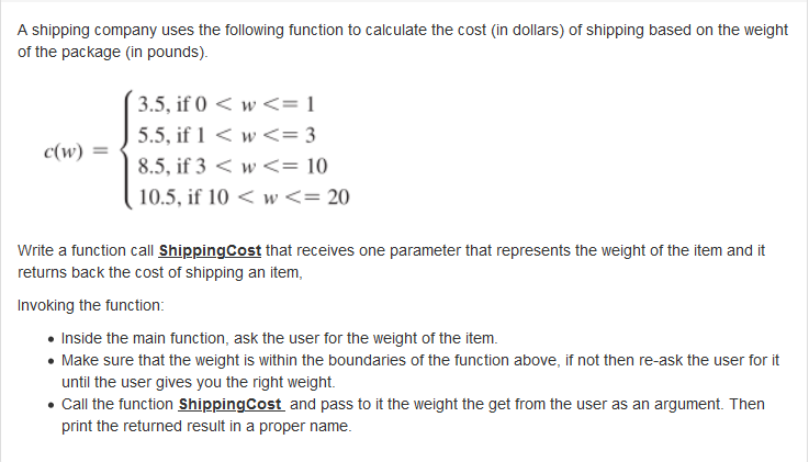 Solved 4. A shipping company uses the following function to | Chegg.com