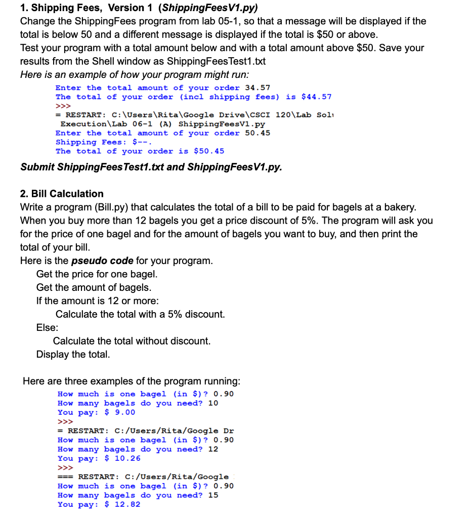 Solved 1. Shipping Fees, Version 1 (ShippingFeesV1.py) | Chegg.com