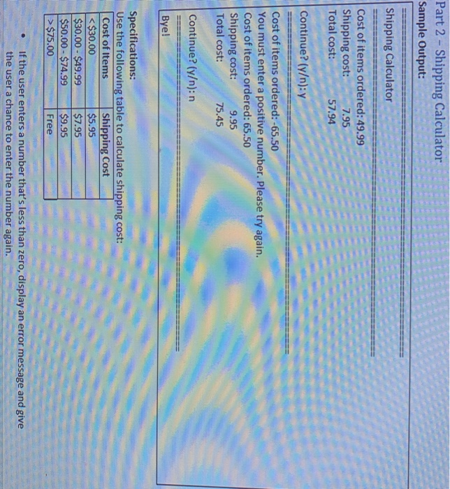 Solved Part 2-Shipping Calculator Sample Output: Shipping | Chegg.com