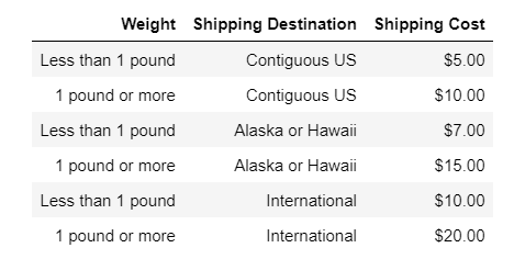 Solved Shipping cost Estimation table As an Junior python | Chegg.com