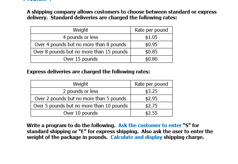 Solved Exercise 2 – Shipping Charges Calculator Write a new | Chegg.com