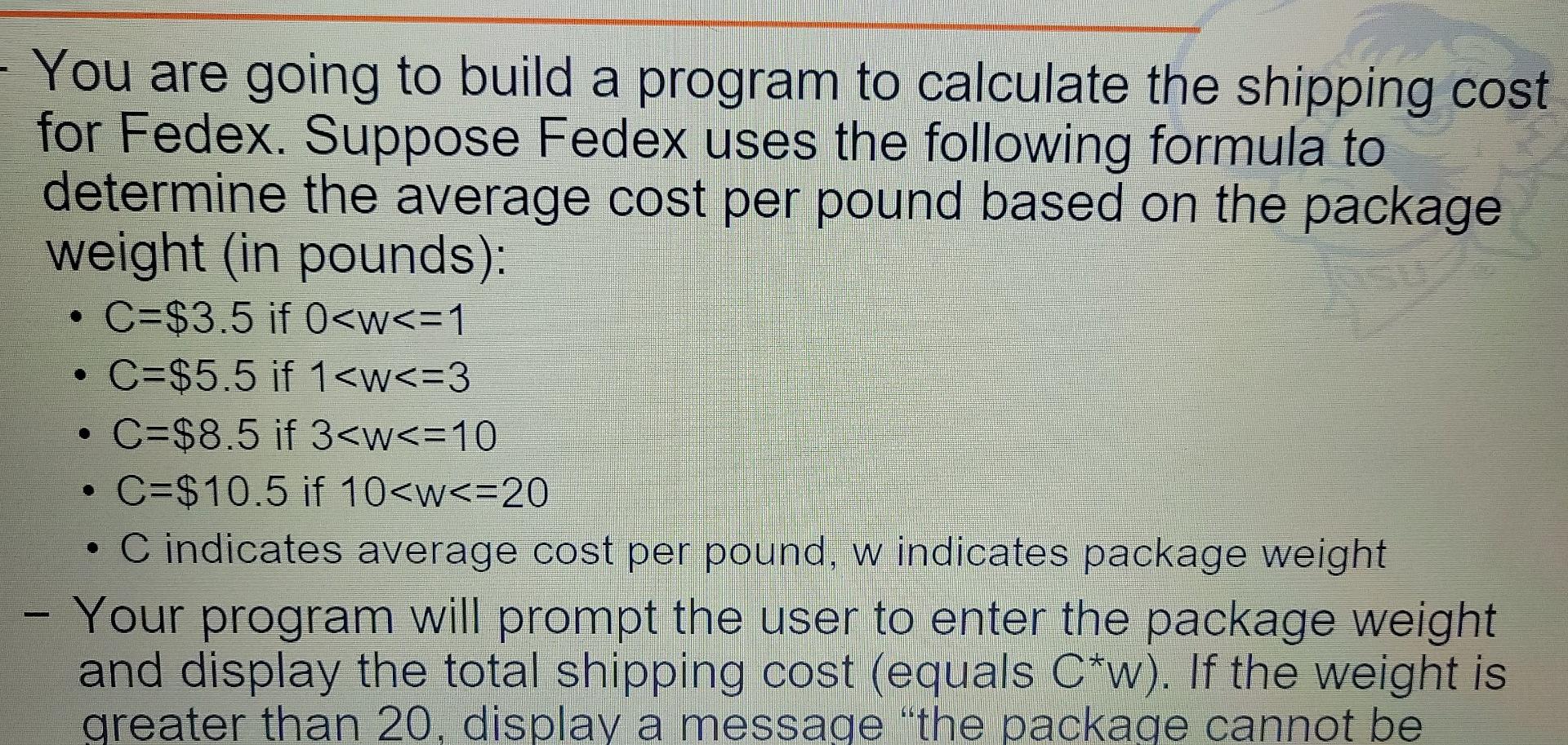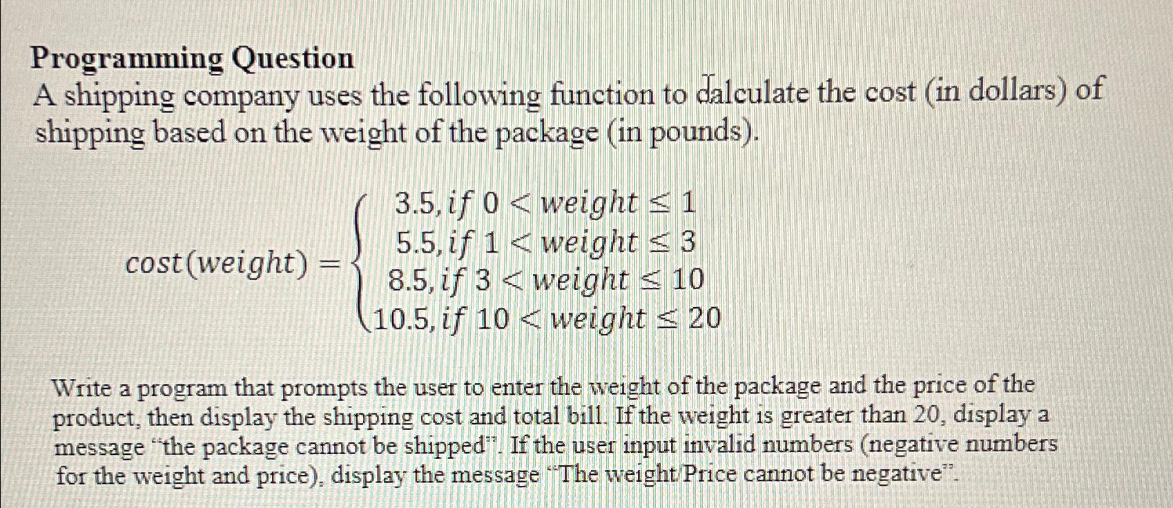 Solved Question 10 30 pts Shipping Cost Calculator Create a | Chegg.com