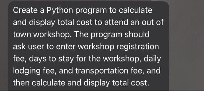 Solved IN PYTHON CODE:Create a program that calculates the | Chegg.com