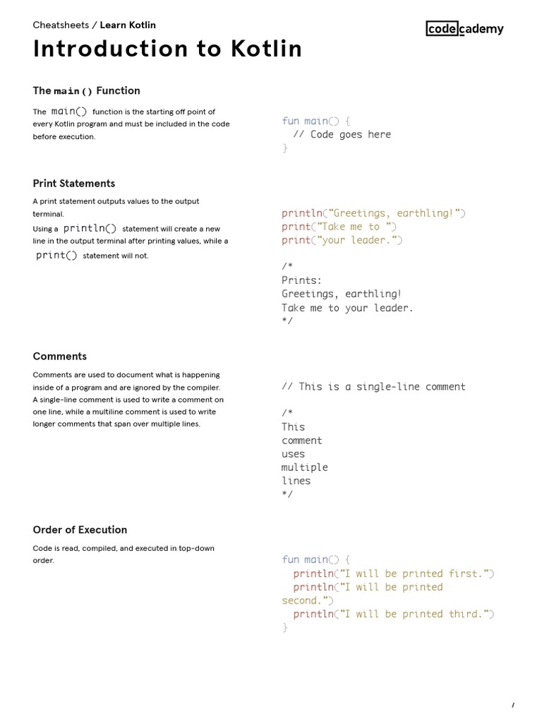 Learn Kotlin Introduction to Kotlin Cheatsheet Codecademy - The main ...
