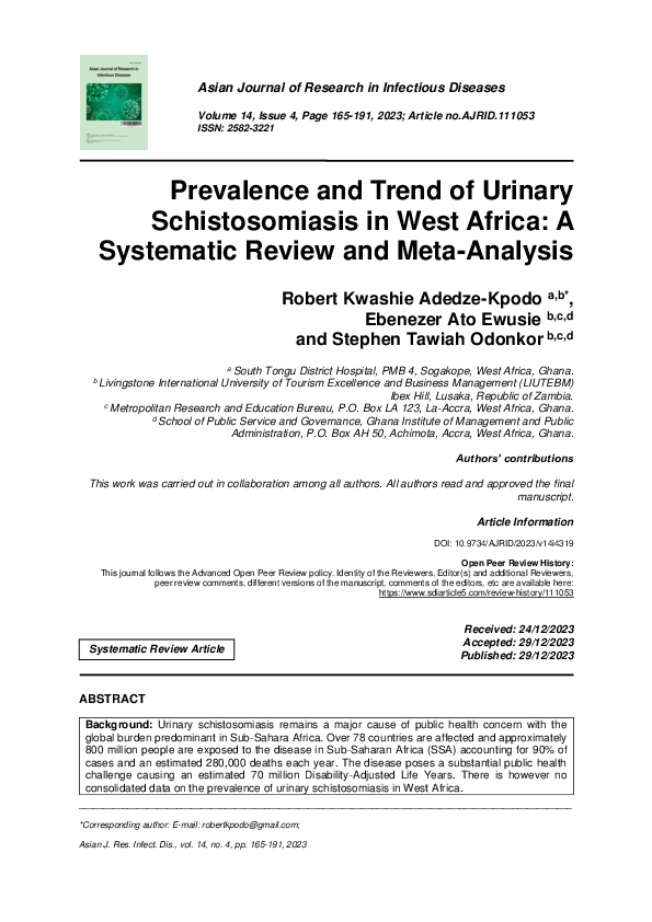 (PDF) Prevalence and Trend of Urinary Schistosomiasis in West Africa: A ...