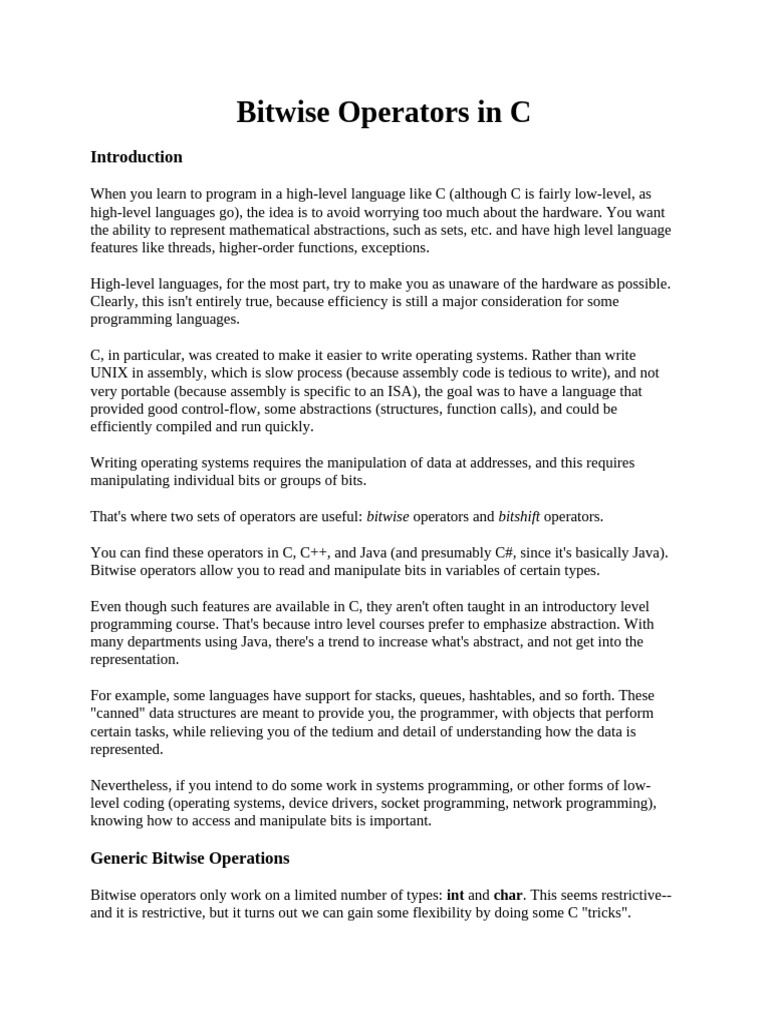Embedded programming basics in C – bitwise operations tutorial | PDF ...
