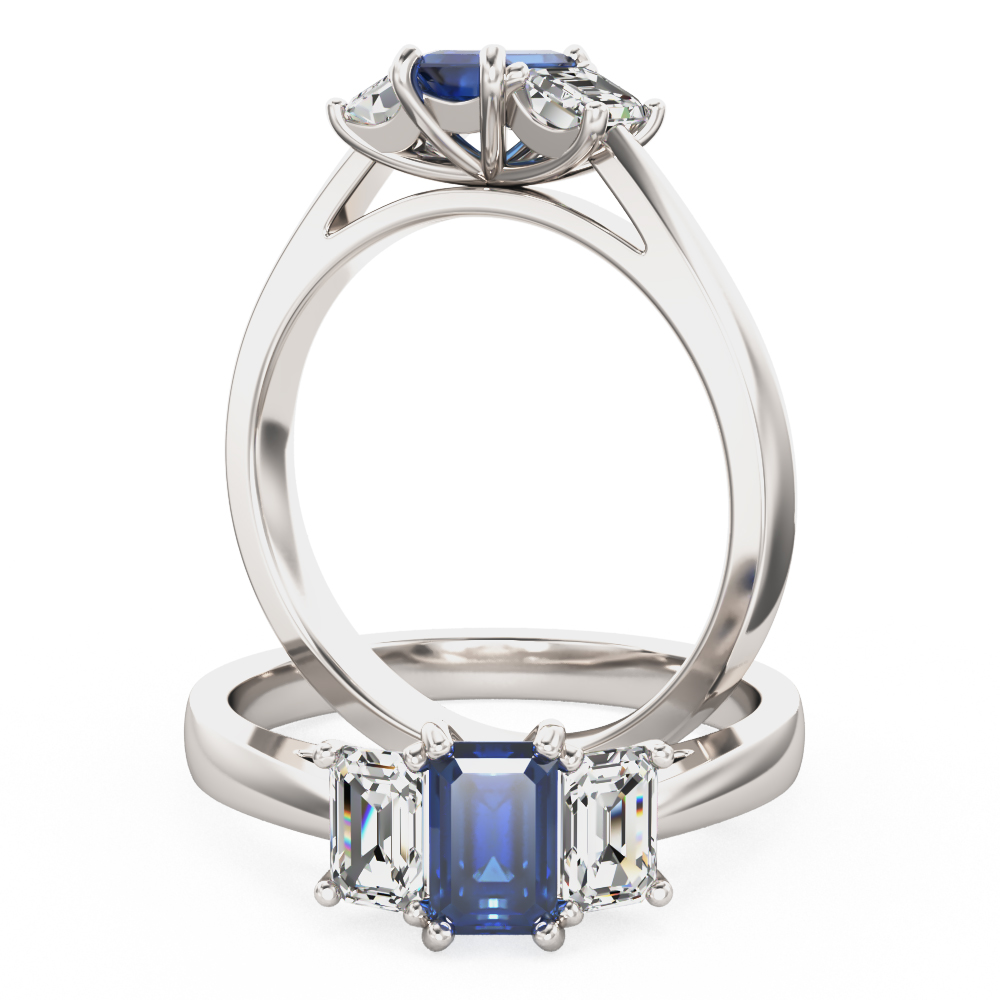 Three stone sapphire & diamond ring in platinum - PDS388PL