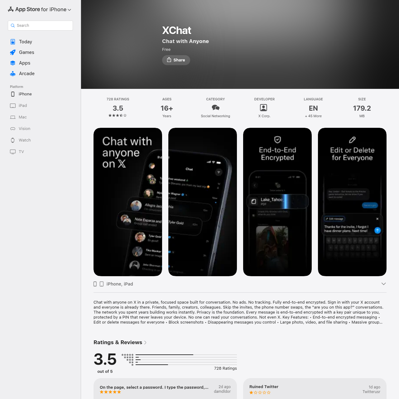 XChat - XChat: Secure End-to-End Encrypted Private Messaging App by X Corp.