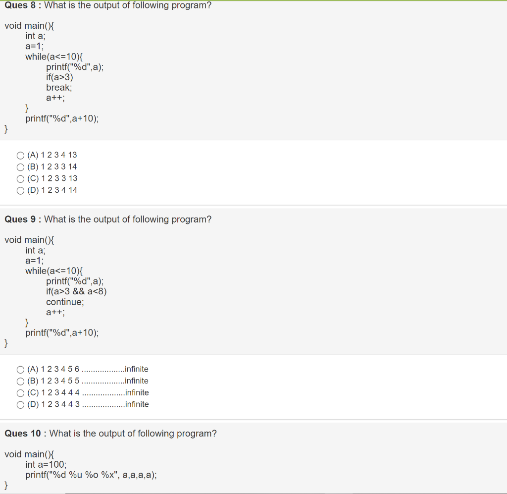 Solved Ques 1: What is the output of following program? void | Chegg.com